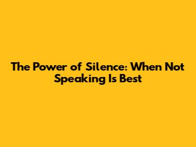 The Power Of Silence: When Not Speaking Is Best