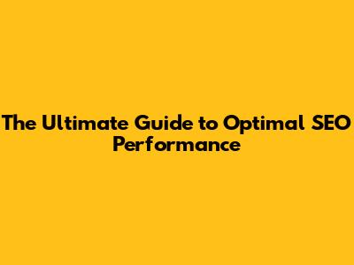 The Ultimate Guide To Optimal SEO Performance