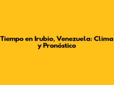Tiempo En Irubio, Venezuela: Clima Y Pronóstico