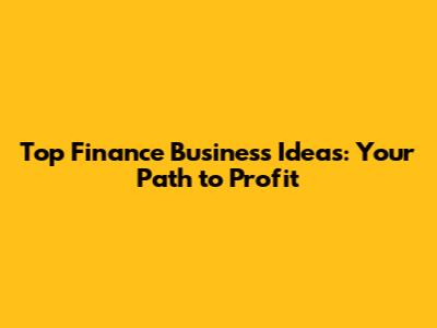Top Finance Business Ideas: Your Path To Profit