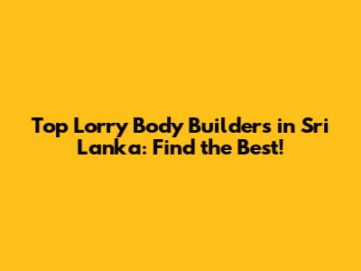 Top Lorry Body Builders In Sri Lanka: Find The Best!