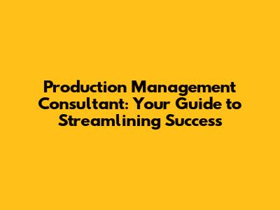 Top Production Management Consultant Tips & Tricks