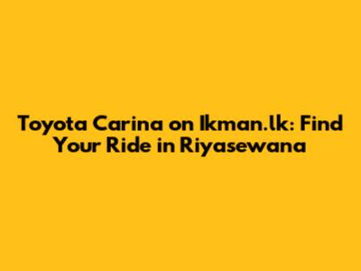 Finding a Toyota Carina on Ikman.lk in Riyasewana can be a rewarding experience. With the right knowledge and a bit of diligence, you can find a reliable and affordable car that will serve you well for years to come. Happy hunting!