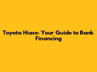 Toyota Hiace: Your Guide To Bank Financing