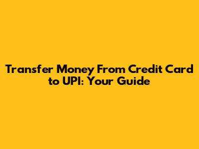 Transfer Money From Credit Card To UPI: Your Guide