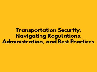 Transportation Security: Regulations, Administration, And Best Practices
