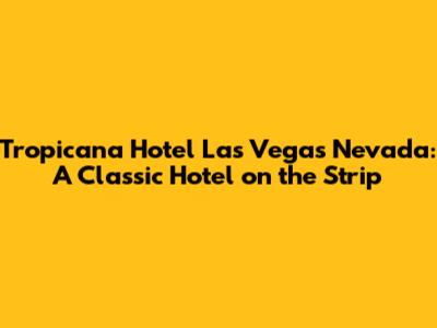 Hey guys! Let's dive into the world of the Tropicana Hotel in Las Vegas, Nevada! This place is a true icon, steeped in history and offering a fantastic blend of classic Vegas charm and modern amenities. If you're planning a trip to Sin City, understanding what the Tropicana offers is a must.