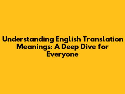 Hey guys! Ever found yourself scratching your head, wondering what a specific English phrase really means, especially when you encounter it in a different context or maybe even in a translation? You're not alone! The English language is a wild and wonderful thing, full of idioms, nuances, and cultural references that can make direct translation a bit of a minefield. That's where understanding the meaning behind the words becomes super important. It's not just about swapping one word for another; it's about grasping the intent, the feeling, and the cultural baggage that comes with it. This article is your friendly guide to navigating the fascinating world of English translation meanings. We’re going to break down why literal translations sometimes fall flat and how to get to the heart of what’s being communicated. So, grab a cuppa, get comfy, and let’s dive in!