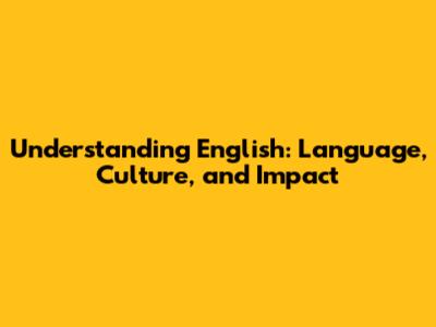 Understanding English: Language, Culture, And Impact
