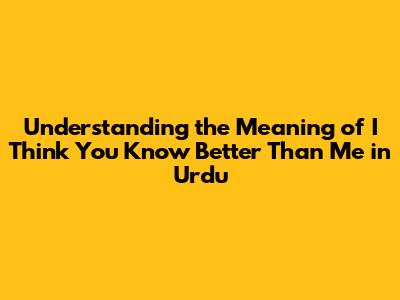 Understanding 'I Think You Know Better Than Me' In Urdu