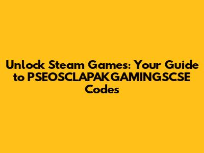 Unlock Steam Games: Your Guide To PSEOSCLAPAKGAMINGSCSE Codes