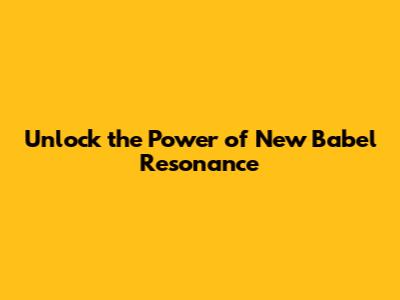 Unlock The Power Of New Babel Resonance