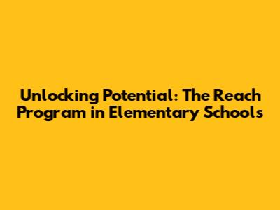 Unlocking Potential: The Reach Program In Elementary Schools