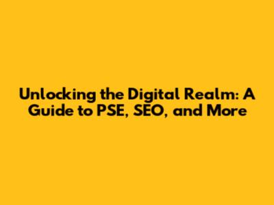 Unlocking The Digital Realm: A Guide To PSE, SEO, And More