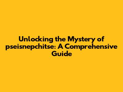 Unlocking The Mystery Of Pseisnepchitse: A Comprehensive Guide