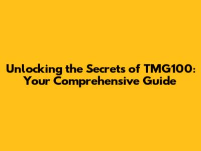 Unlocking The Secrets Of TMG100: Your Comprehensive Guide