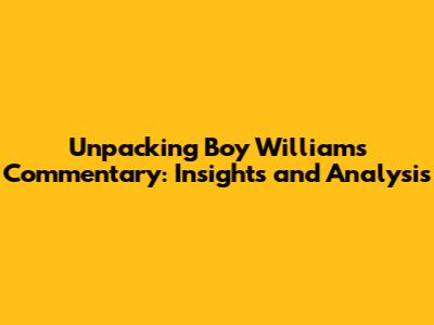 Unpacking Boy William's Commentary: Insights And Analysis