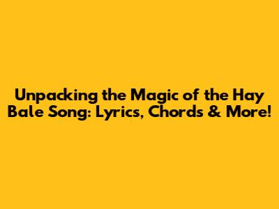 Unpacking The Magic Of The Hay Bale Song: Lyrics, Chords & More!