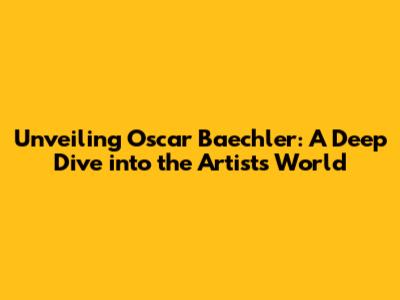 Unveiling Oscar Baechler: Art, Life, And Legacy