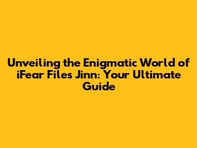 Unveiling The Enigmatic World Of IFear Files Jinn: Your Ultimate Guide