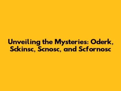 Unveiling The Mysteries: Oderk, Sckinsc, Scnosc, And Scfornosc