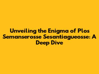 Unveiling The Mysteries: Plos Semanserosse Sesantiagueosse Explained