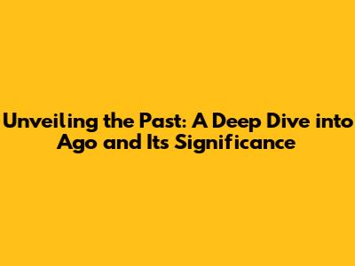 Unveiling The Past: A Deep Dive Into 'Ago' And Its Significance