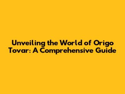 Unveiling The World Of Origo Tovar: A Comprehensive Guide