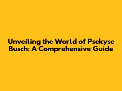 Unveiling The World Of Psekyse Busch: A Comprehensive Guide
