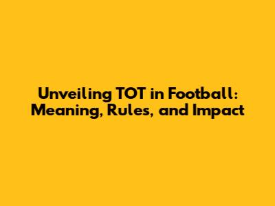 Unveiling TOT In Football: Meaning, Rules, And Impact