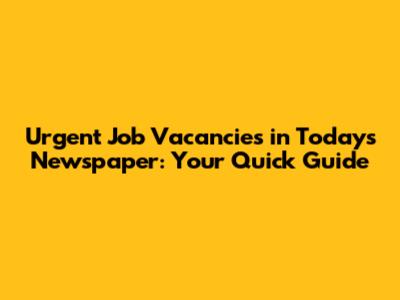 Urgent Job Vacancies In Today's Newspaper