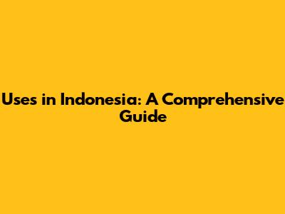 Uses In Indonesia: A Comprehensive Guide