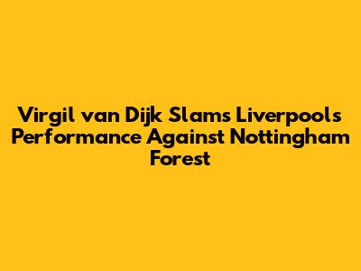Van Dijk Slams Liverpool's Performance Vs. Nottingham Forest