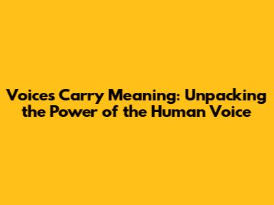 Voices Carry Meaning: Unpacking The Power Of The Human Voice