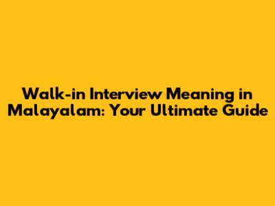 Walk-in Interview Meaning In Malayalam: Your Guide