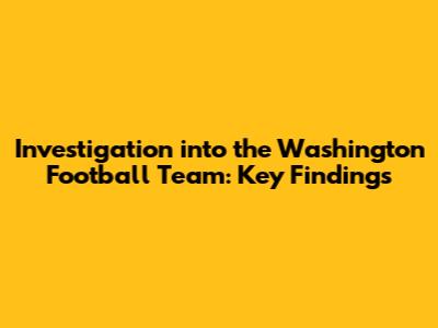 Washington Football Team Investigation: Key Findings