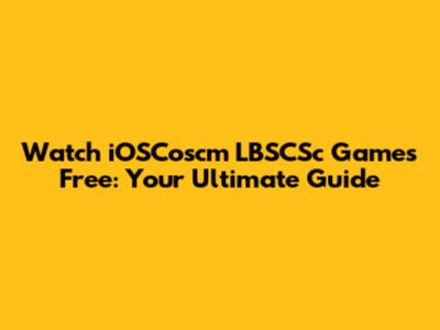 Watch IOSCoscm LBSCSc Games Free: Your Ultimate Guide