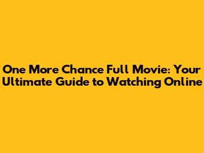 Watch 'One More Chance' Full Movie: Your Ultimate Guide