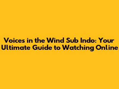 Watch Voices In The Wind Sub Indo: Streaming Guide