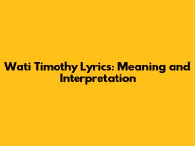 Wati Timothy Lyrics: Meaning And Interpretation