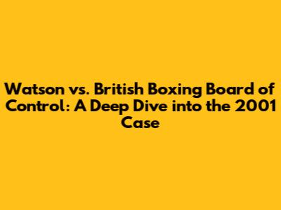 Hey guys, let's dive into a real heavyweight legal battle: Watson v. British Boxing Board of Control (2001). This case isn't just a legal footnote; it's a pivotal moment that reshaped the landscape of boxing and sports regulation. We're going to break down everything, from the core issues to the lasting impact, so you can understand why this case still matters today. Think of it as a ringside seat to a legal showdown!