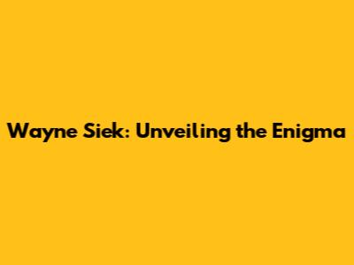 Wayne Siek: Unveiling The Enigma