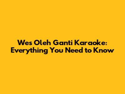 Wes Oleh Ganti Karaoke: Everything You Need To Know