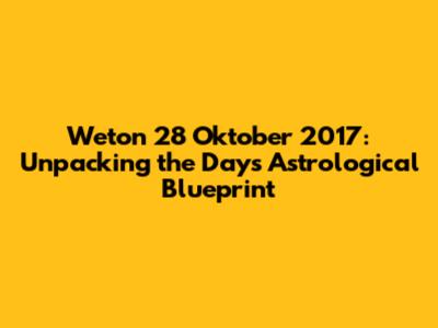Hey guys! Let's dive deep into the fascinating world of Javanese astrology, specifically focusing on the weton for October 28, 2017. If you're new to this, a weton is essentially a calendar system that combines the seven-day week with the five-day market week (Pasaran). It's a super cool way to figure out the day of your birth and understand its associated energies. Knowing your weton helps you gain insights into your personality, potential, and even your love life. It's like having a personalized astrological blueprint! So, for October 28, 2017, we'll uncover the specific weton combination and what it reveals. This includes the neptu, or the numerical value associated with the day, which is crucial for determining fortune and compatibility with others. We'll explore the character traits often linked to this weton, and touch upon the potential for good luck and challenges. Get ready to have your mind blown! This isn't just about dates and numbers; it's about understanding the subtle energies that influence our lives and how to make the most of them. In this article, you'll discover the significance of the weton, how it influences various aspects of life, and what the specific weton of October 28, 2017, means for those born on that day or those seeking to understand its energies. Ready to unlock the secrets of October 28, 2017? Let's jump in and start the adventure of uncovering the hidden meanings of your life!