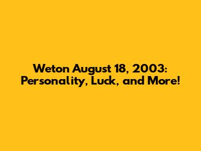 Alright, let's get down to business. For those born on August 18, 2003, we need to determine the specific weton associated with that date. August 18, 2003, was a Monday. To find the pasaran, you'd typically consult a Javanese calendar or use an online weton calculator. Assuming August 18, 2003, corresponds to Pon, the weton for that date is Senin Pon.