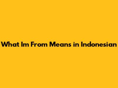 What I'm From Means In Indonesian