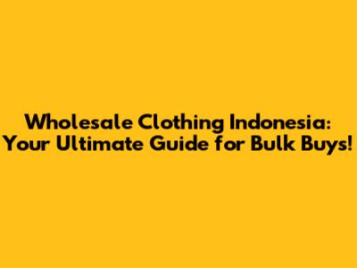 Wholesale Clothing Indonesia: Your Ultimate Guide for Bulk Buys!