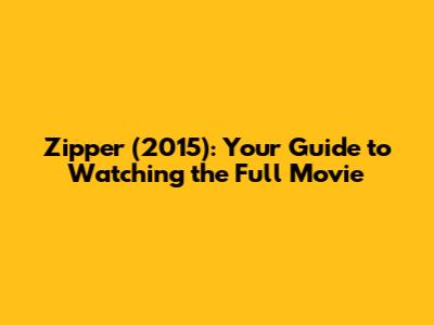 "Zipper" (2015) is a gripping thriller that explores the dark side of human nature. With a compelling plot and strong performances from the cast, it's definitely worth checking out. Remember to use the information above to find out where you can watch the full movie online. Happy watching, and enjoy the suspense!